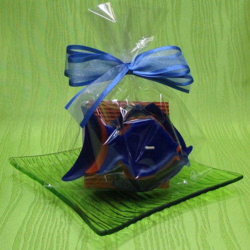Svíčka skládaná vonná - ryba oranžovomodrá (vůně: pomeranč, vanilka)